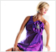 Stunning bubble skirt short irridescent taffeta dress. Single shoulder, other side pleated and flowy to create the bubble skirt. Large flower over front pleats made of taffeta embellished with irredescent stones.